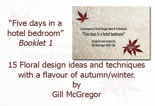 Flower Arranging Booklet1 Booklet 1 "Five days in a hotel bedroom" How to make instructions for 15 Contemporary Floral Design Ideas & Techniques £1 donated to Cancer Research UK for every booklet purchased Booklet price £5.99 Plus P&P